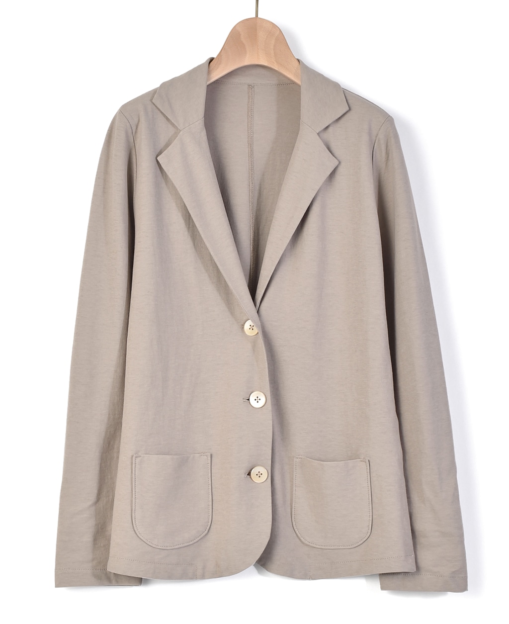 天然貝の釦が、上品なジャケットスタイルを演出します。