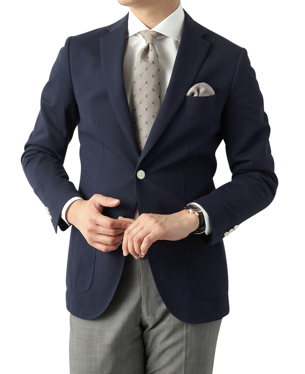 伸縮性に富み、シワが目立ちにくい素材感は、普段使いはもちろん、出張などにもおすすめです。
